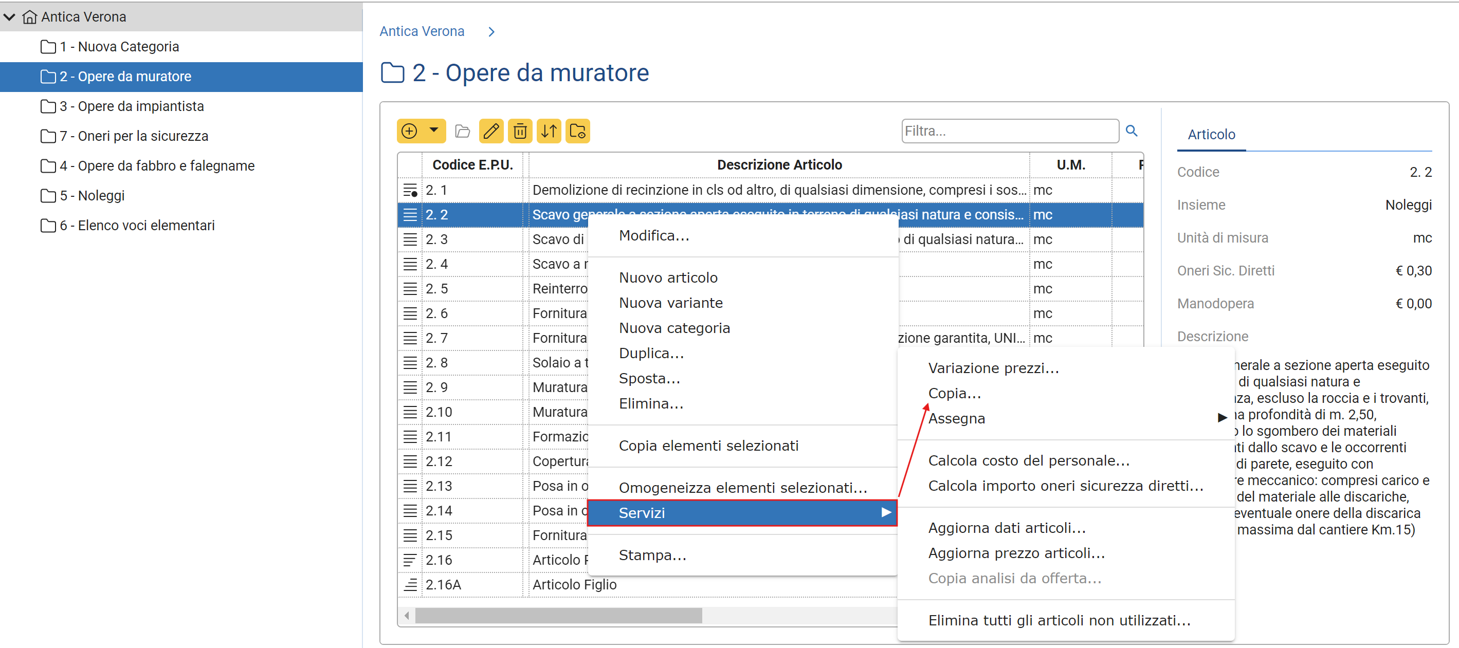 All'interno di questa sezione sono descritte le procedure operative caratterizzanti le funzionalità di servizio utilizzabili all'interno della finestra di Elenco Prezzi, ossia: