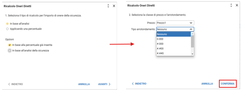 - Premere il pulsante "Avanti" e apparirà la possibilità di scegliere il tipo di arrotondamento dei decimali;
