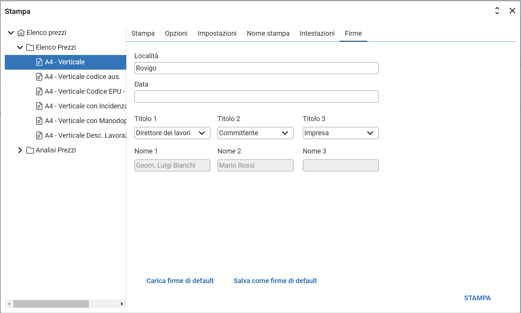 Nella scheda "Firme", possiamo selezionare i vari soggetti coinvolti nel progetto, o inserirli manualmente nei Dati di Progetto: